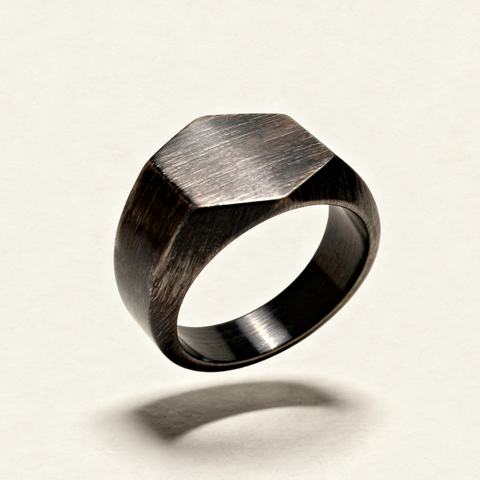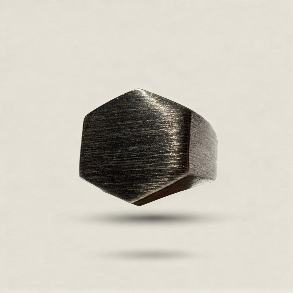 EXA OLD es un anillo tipo sello con cara hexagonal y acabado envejecido. Su textura “old” le da carácter real: se ve rudo, minimal y con presencia, como una pieza que ya tiene historia. Ideal para quien quiere un solo detalle protagonista y que se note.