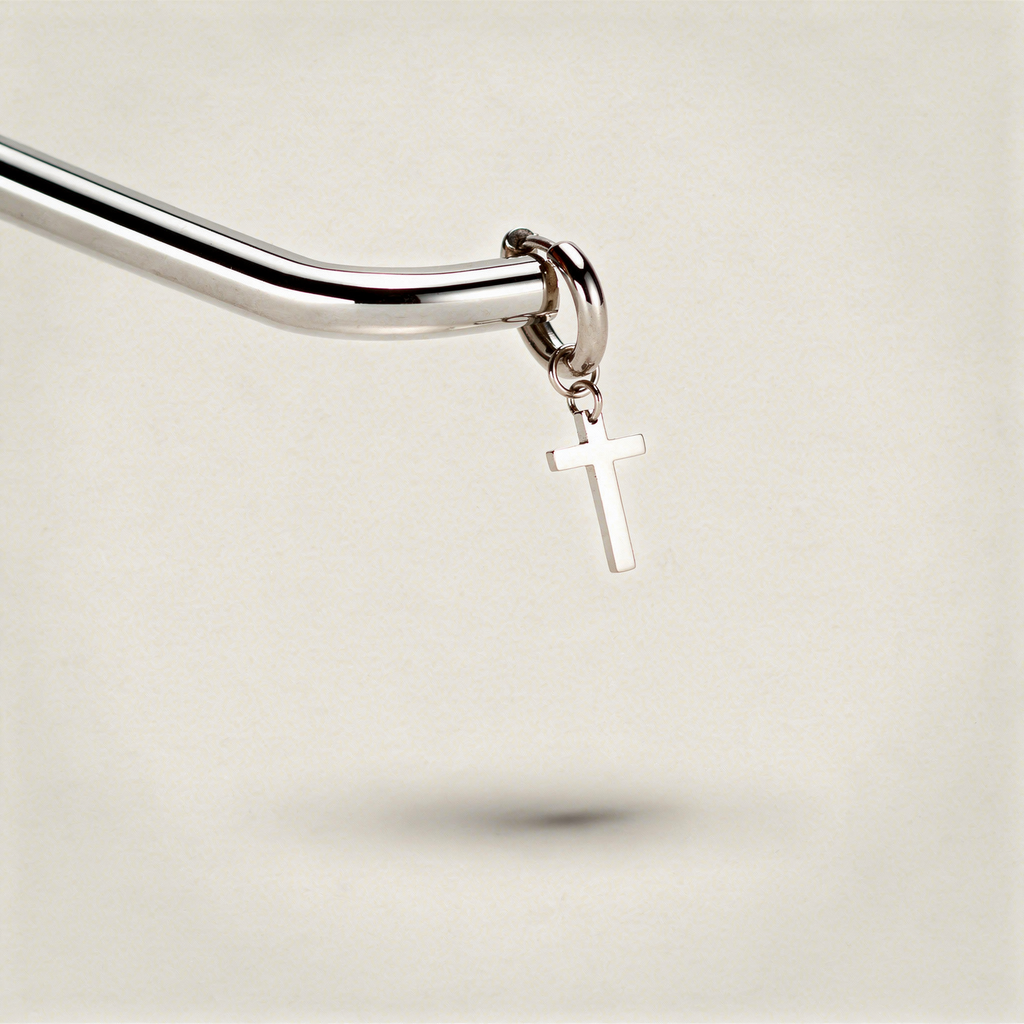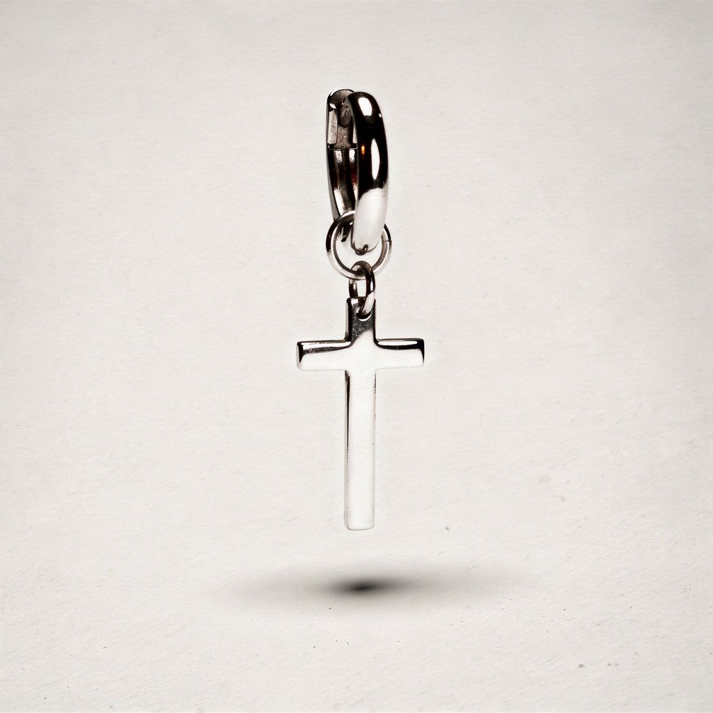 El Arete CROSS es un aro minimal con dije de cruz colgante en acero pulido. Limpio, elegante y con presencia sutil: el detalle perfecto para elevar tu look sin recargar. Úsalo solo para un estilo más fino o combínalo con otros aretes para un stack con intención.